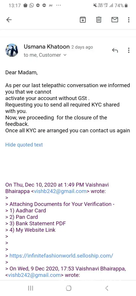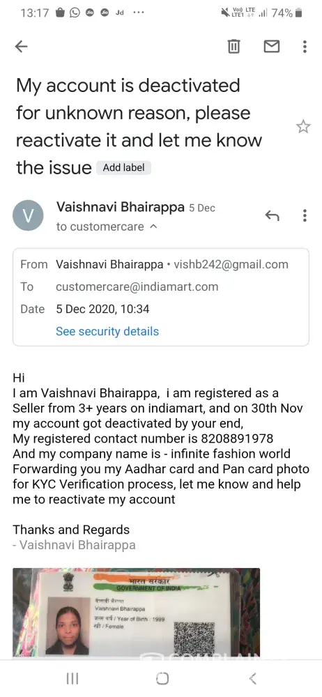 Complaining on Indiamart for Reactivation of my Indiamart Seller Account