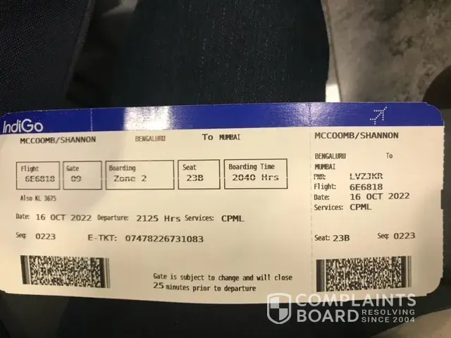 My wife and I took flight 6E6818 from Bangalore to Mumbi on 10/16/2022.