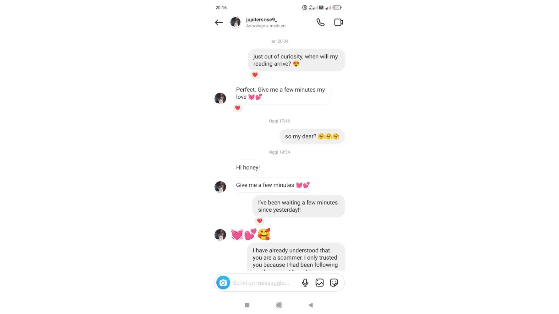 Thank you for posting this. I purchased a $120 reading from her and messaged on her Instagram and email account. There were so many red flags I avoided since I've been watching her for years. People throughout the years have been commenting saying they never get their readings. She seems like she moves from location to location without something stable. she constantly asks for feedback and doesn't improve, like her readings have been very quiet for a long time. She also asks people to be nicer to her and talk to her with more respect when criticizing her or calling her avoidant. If I've given you $120 and you aren't communicating with me on your service of course I'm gonna get mad! She never has gotten back to me when I ask her for details on my reading. There's multiple Venmo accounts with her name with a new number (probably because she keeps getting reported). So all around yeah she's scamming people. If she's not trying to scam people then she's extremely disorganized and you shouldn't trust you will get your reading if you order one.