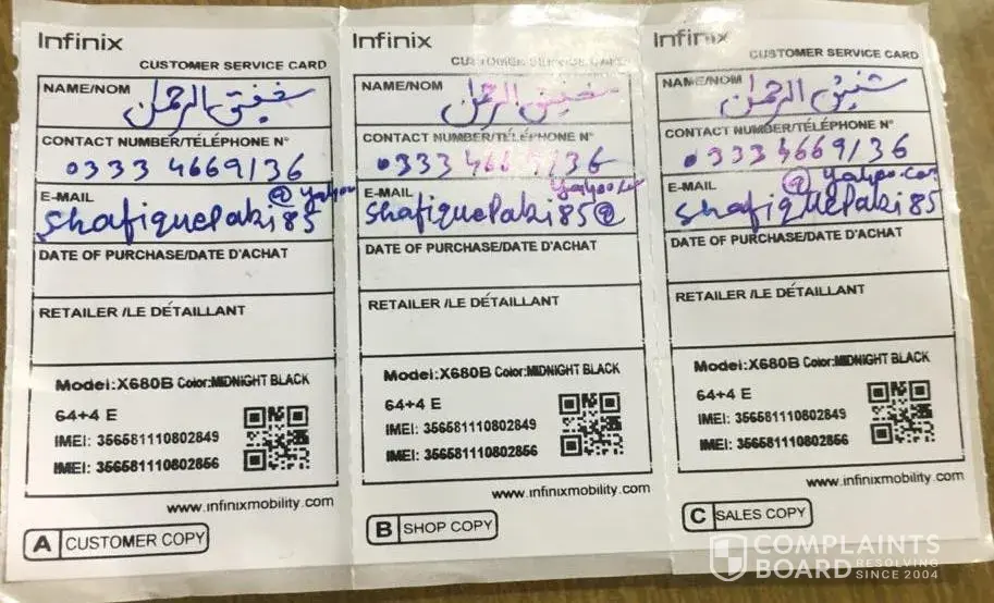 It is not my mistake that I will late durning the warranty time I was visit but it was off . I hope you look your Carl care centers Karachi they doing Froude and offering us 10 thousand for repare the mobile. I'm a regular user of Infinix if you people not support us gives favour so we change brand because its not my mistake that I m late its a public holiday Saturday Sunday so it will not my mistake kindly give favor and make my mobile I can send my ime number and please waiting for positive response hope you consider my request and one day late warranty time considerable.