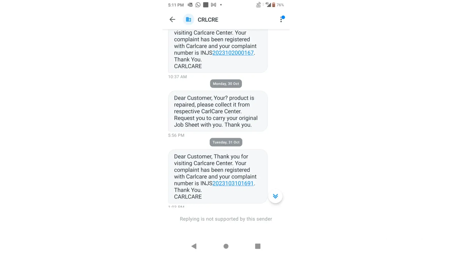 Pls refer Job number, they just keep on changing every week. If we visit they simply say it's still pending will call you back once we receive, if required you complain against service centre