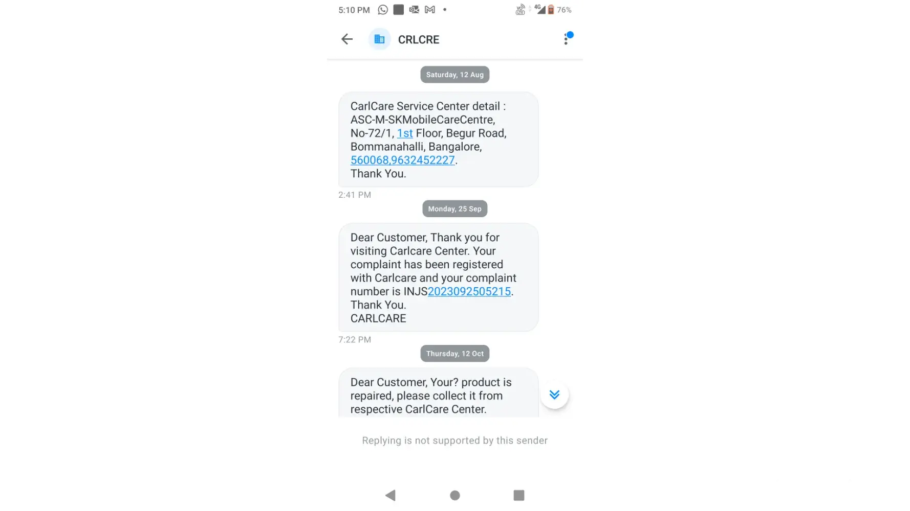 Given to fix speaker issue at SK mobile Bommanahalli service centre, they took 10 days to fix, again it's not received, again I gave for repair then he took 10 more days, they changed speaker but issue not resolved. Again I gave for replacement, he said ok for replacement but he changed mobile display without my knowledge, after that I couldn't insert my handsfree because of bad fitting,