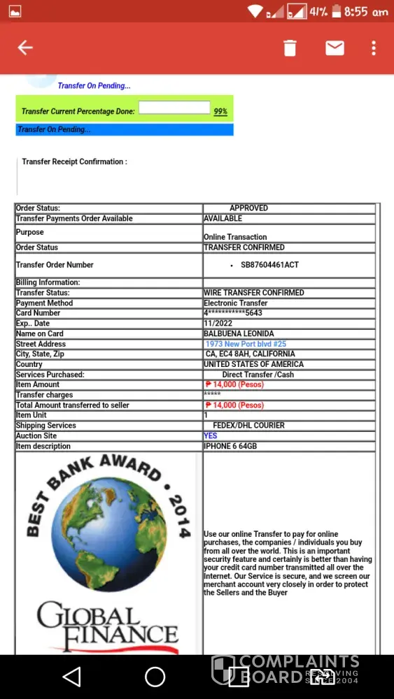 Hi, please share the email address of the bank from where you received this confirmation email. Also did Balbuena Leonida communicated with you from the following email id: balbuenaleonida23@gmail.com ?