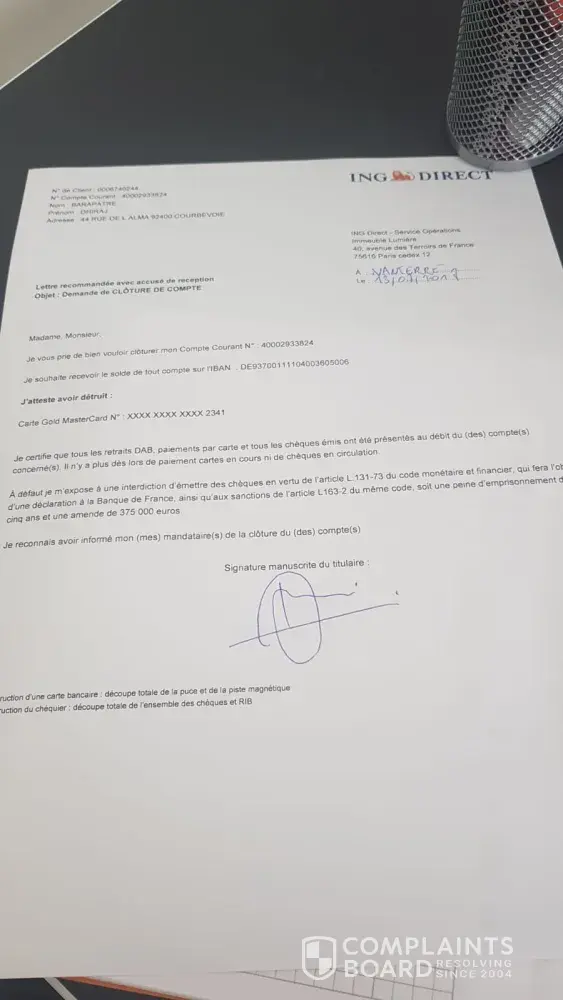 I have sent the closure form by La poste dated 13.07.2018 but you have not closed the account. I have tried to contact from india and does not work out. My friend contacted to Customer care france but they said only i have to contact them.