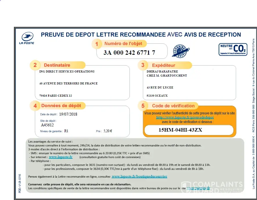 I phoned customer service who advised me to put my complaint in writing. I sent my letter, which I know was delivered to ING.