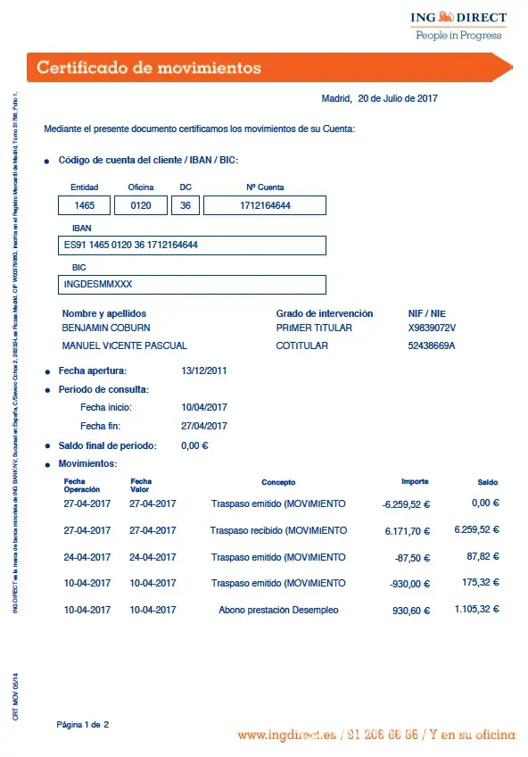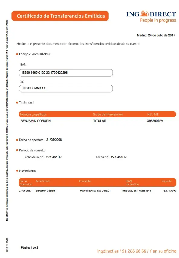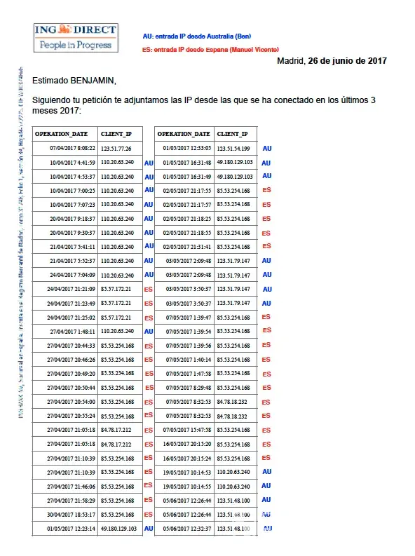 I have full proof of how it was done whereby he pretended to be me logging in from Spain and then moving the funds from my account to an old common account and from there to his LA Caixa personal account, then proceeding to close the common account.
