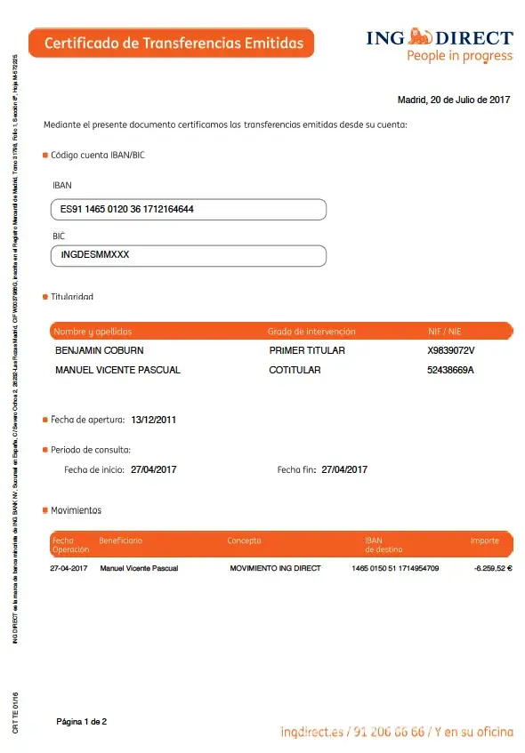 Hello, we have recently received a transaction from an Ing bank inSpain for a apartment sale.