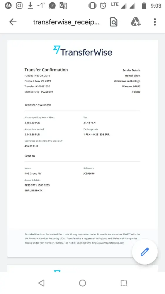 The money was transferred to our Bank account and we were given a very poor exchange rate.