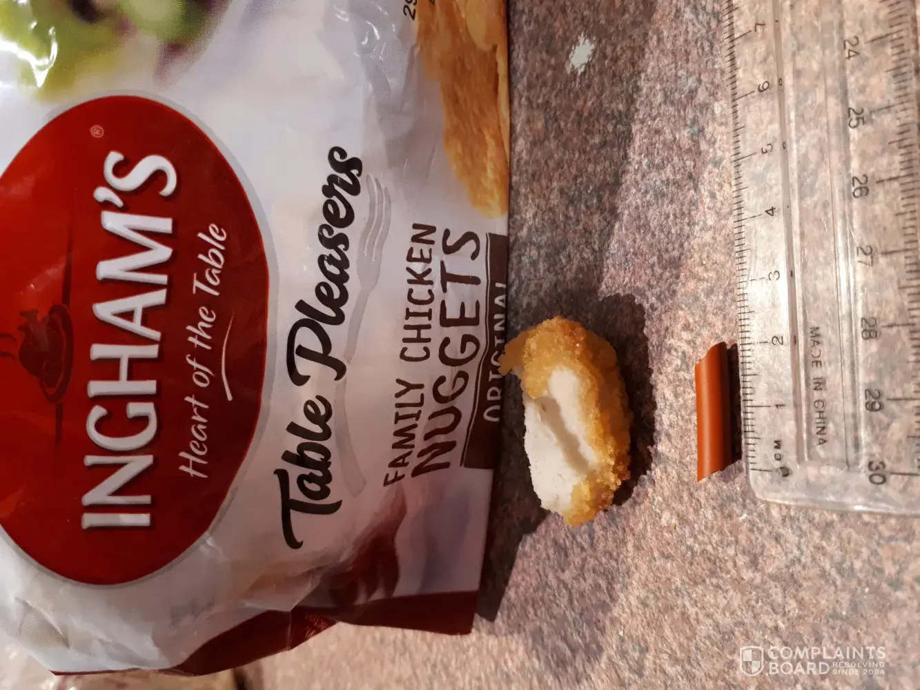 A few weeks ago (1st Sept 2019) we served our small kids (aged 7 and 4) some Inghams Chicken Nuggets and were shocked to find a 2cm piece of orange rubber inside one of the nuggets. I'm not sure what it is and where it came from but we're very lucky the kids didn't eat it as this could have caused major health problems! Please investigate further, I still have the object if required and see photos attached. I look forward to your response.
