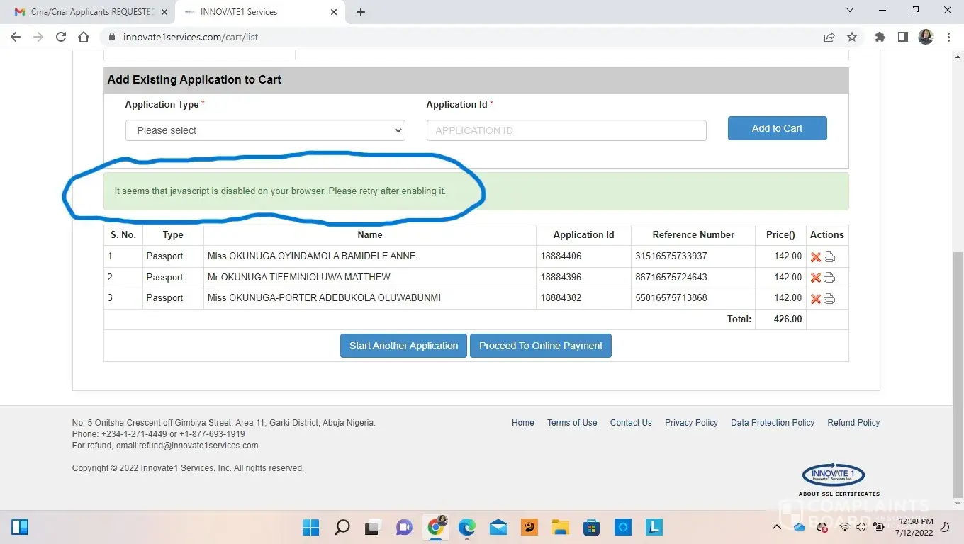 Update: If you are still having problems, call +[protected]. There is a nice American lady who has stepped in to cover the rank incompetence of the organization. She helped me complete the process. There definitely is something wrong with their Innovate1 payment platform.