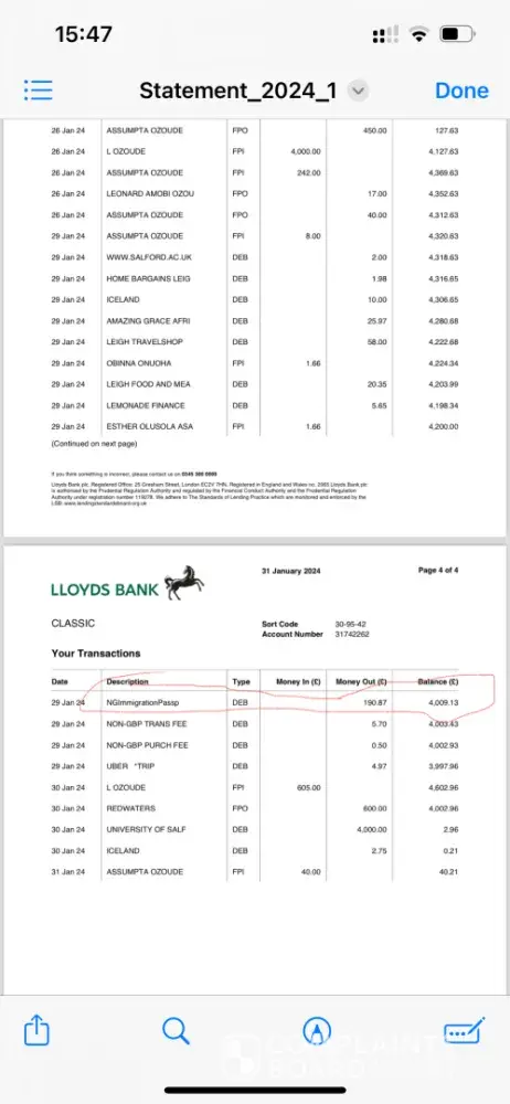 I paid $242 which is £190.87 for my passport renewal on Friday, the 26/01/2024 and was debited instantly. The payment was authorised on Monday 29/01/2024. However, my application is still showing that I have not paid. I called your customer service but was blocked after the person at the other end pretended not hear me.