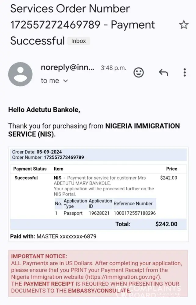 Nigerian passport payment refund