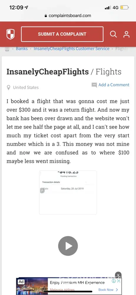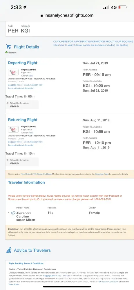 Overall, I'm extremely disappointed with Insanely Cheap Flights and would advise anyone to steer clear of them. They have caused me a lot of stress and frustration, and I wouldn't want anyone else to go through the same thing.