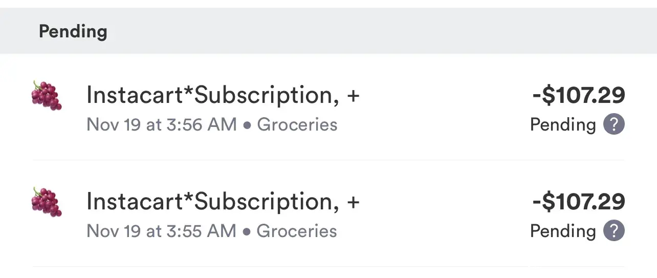 I use this app for grocery shopping but I never thought I was going to get charged 107 twice 107 ? I want my money back! I have no subscription with them I never would've done it for a year! Never again I want my money 🔙 I'm going to the police this app is a scam! I have seen reviews and I'm not the only one who has been charged for something like this I want my money back!