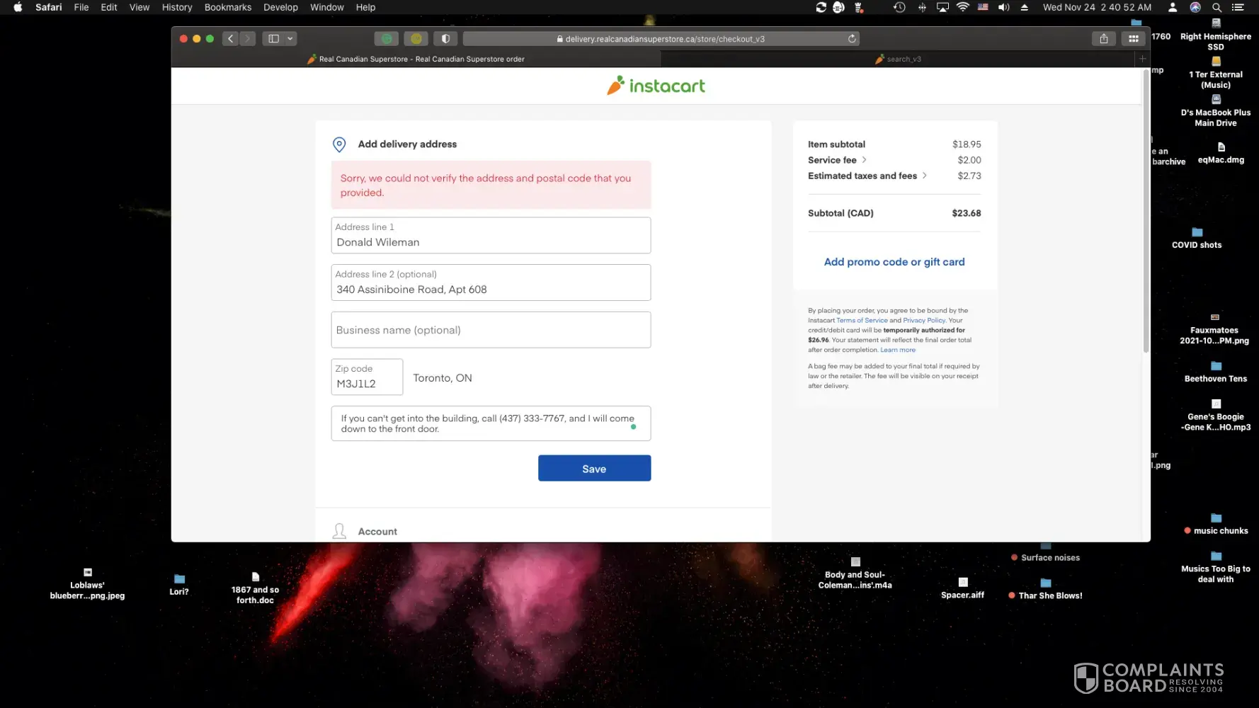 Customer given wrong address to instacart! Shopper was blamed for it