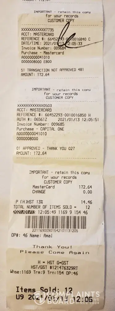 Customer "A": Everything good, look at receipt "A" in the picture.