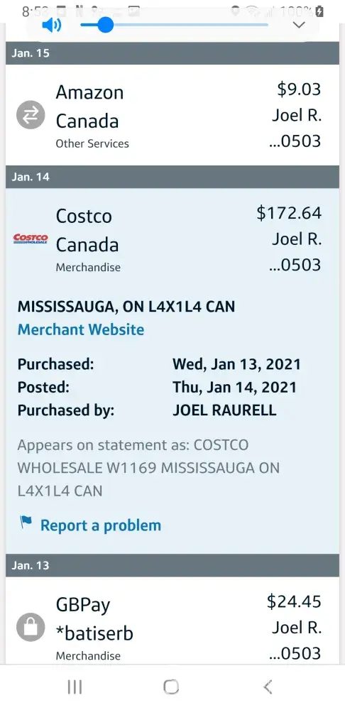 The record in my personal card and the receipt C in another two pictures to make a close up.