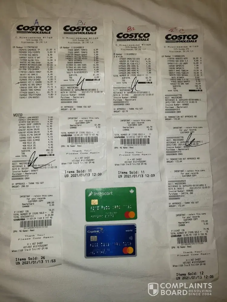 You can see on the receipt "C" two transactions : the first part that was the Instacard transaction denied and the second part at the bottom, the same transaction accepted but with my own card.