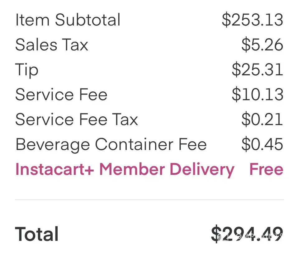 Instacart, great concept, but a huge rip-off. They have zero customer service knowledge and deliveries are never complete as ordered. They charge for membership, service fees, service fee tax, traveling fees and container fees. None of these fees are disclosed prior to processing payment. They also expect a 10% gratuity with the option to increase!