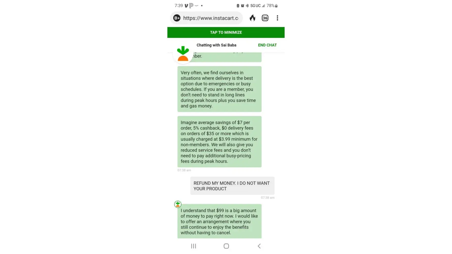 Instacart automatically renewed my membership, even though i had canceled it in August. I contacted them October 20, 2022 to cancel my membership yet again. The agent made it extremely difficult to cancel. He continuously attempted to sell me the product after I made it very clear several times I was not interested and wanted to cancel. I have screenshots of the entire conversation.