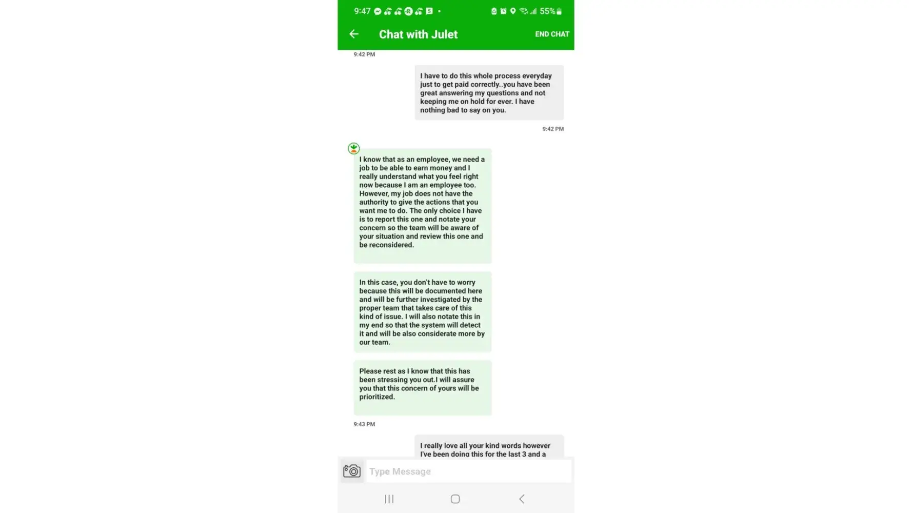 After getting NO WHERE with the rep she disconnected the chat while we were still actively communicating. I am SO upset.