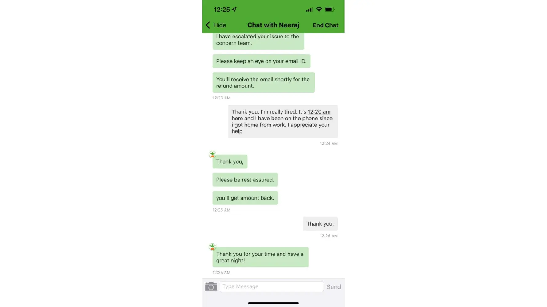 before I could even begin to type in a reply I get a second message that item was refunded.