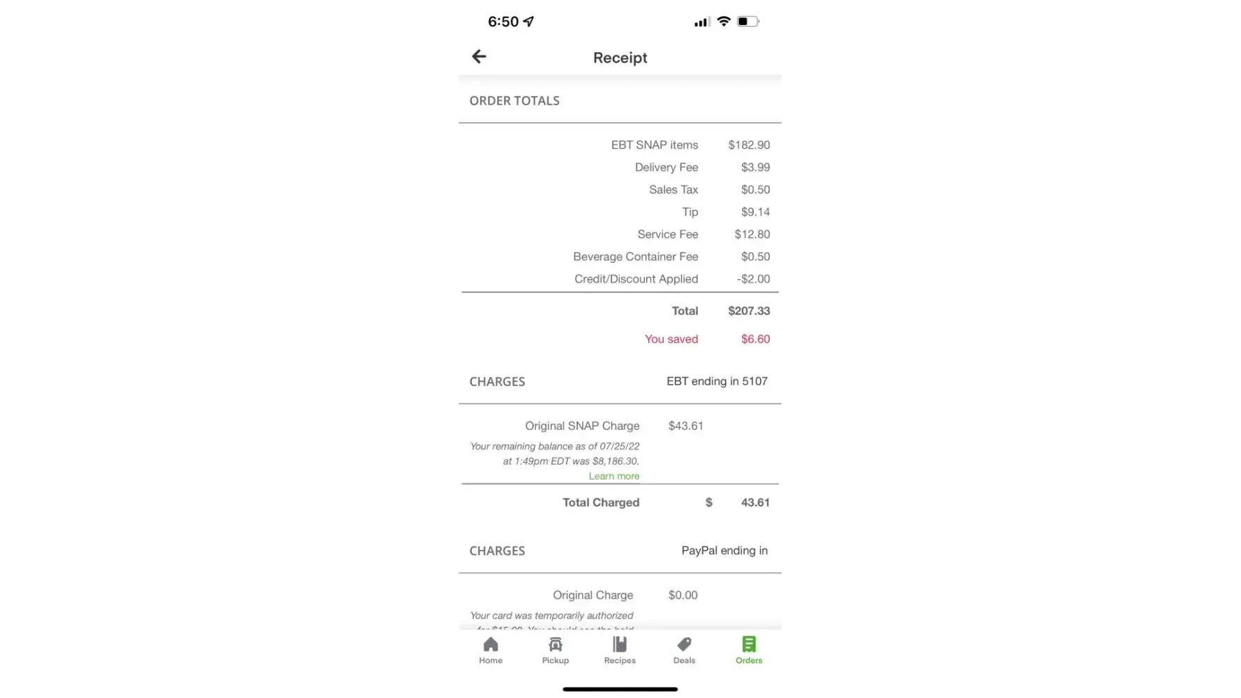 They will charge your debit card half of the items in cart when everything can go on your ebt card. They can charge the card again for weigh items they choose not to. There is a error when you add all ebt to ebt. Its obvious what their doing. Beware of and look at how much is added to ebt card. All items was ebt. There is no way weigh items or prices can't be adjusted to ebt card. Its very sneaky. Walmart has the option to do that. Also they charge fee's and delivery fee's if people have a ebt card what makes them think people can pay extra fee's and tips. The delivery fee should be enough. If your poor, disabled, elderly go with amazon grocery or ask a neighbor to take you to the store. These delivery services is only for people who can afford it. Food prices already high. Not many stores accept ebt online either. They thought oh let's milk the poor by making them think this is convenient and helpful.