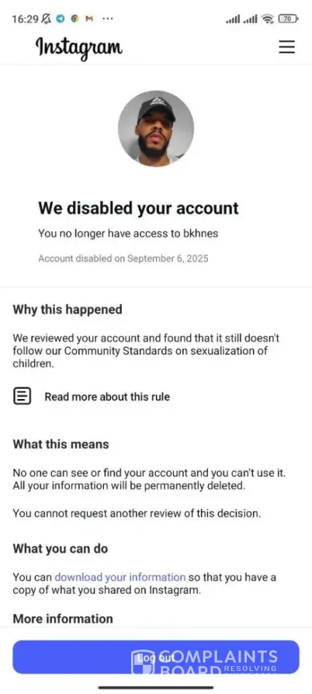 Instagram account with the username @aslankaos was disabled on September 14, 2025, under the justification of “account integrity,†even though I did not violate any rules. Despite being a real person, my access was terminated directly without being given any opportunity for identity verification or additional review. I was conducting my commercial...