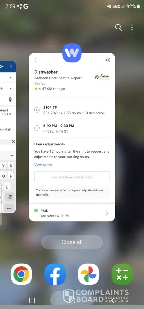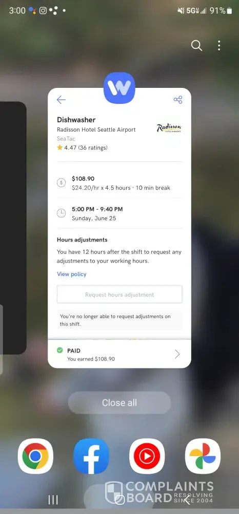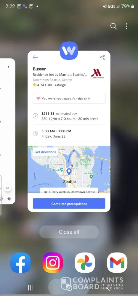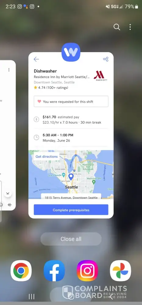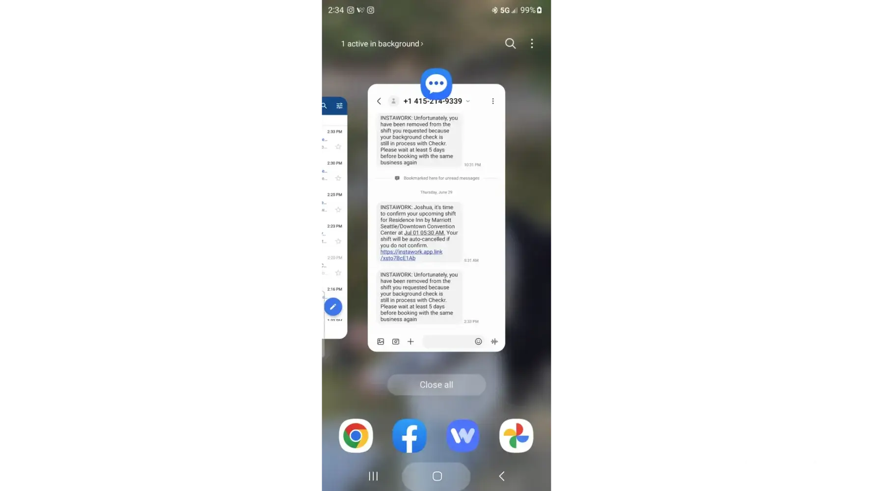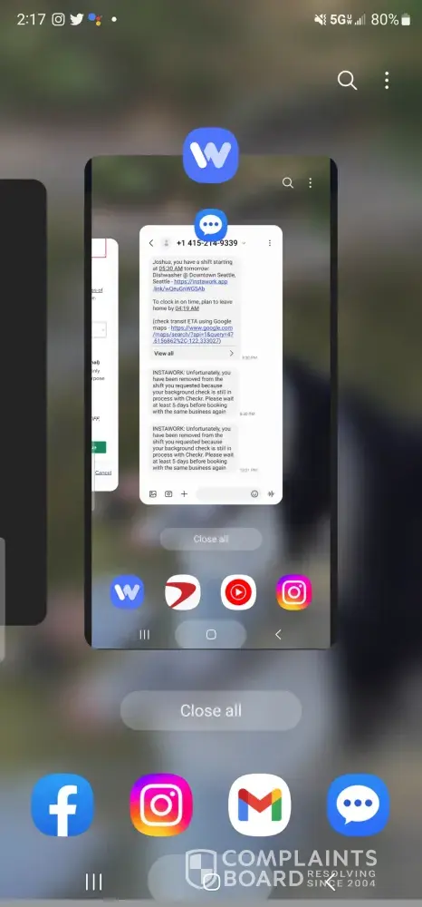 The following morning I was suspended by Instawork because, according to them, I was a no show.