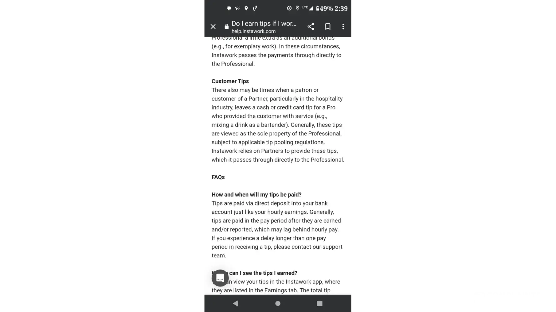 I worked for instawork as a bartender and Instawork has not paid me for my earned tips. I asked prior to starting the shift if there was going to be an issue with tips and the captain of the team stated no, that we would be paid our tips a week after our hourly rate. I even got a message stating that I received direct deposit on Friday (should have been my tips) and there's no deposits. I know that other employees have been waiting over a month for their tips