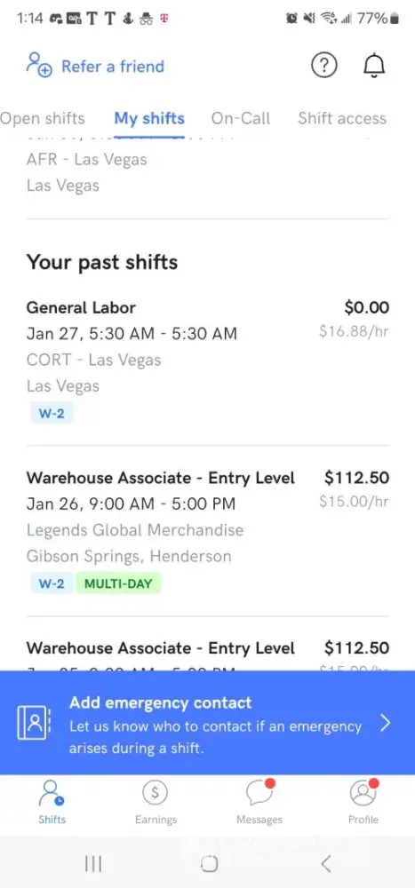 I haven’t gotten many gigs from them and I do see similar jobs that are available on Wonolo, workright and other gig apps. It’s unique in the way that it allows you to be interactive and a little more involved. So I do appreciate the personal touch as I think in the long run, that’ll be beneficial to obtaining more jobs. But to anyone looking to download this and work same day, try Wonolo or a food delivery service! More of a long term invest and takes some time to get started. I like how personal they are when applying for certain positions, they have someone specifically go over your work experience to see if you’re the right fit for the job. As well as make that job category available for you for future jobs. Also writing this to hopefully get some sort of incentive as they asked me to write a review and screen shot it. I hope this helps! Good luck and work hard!