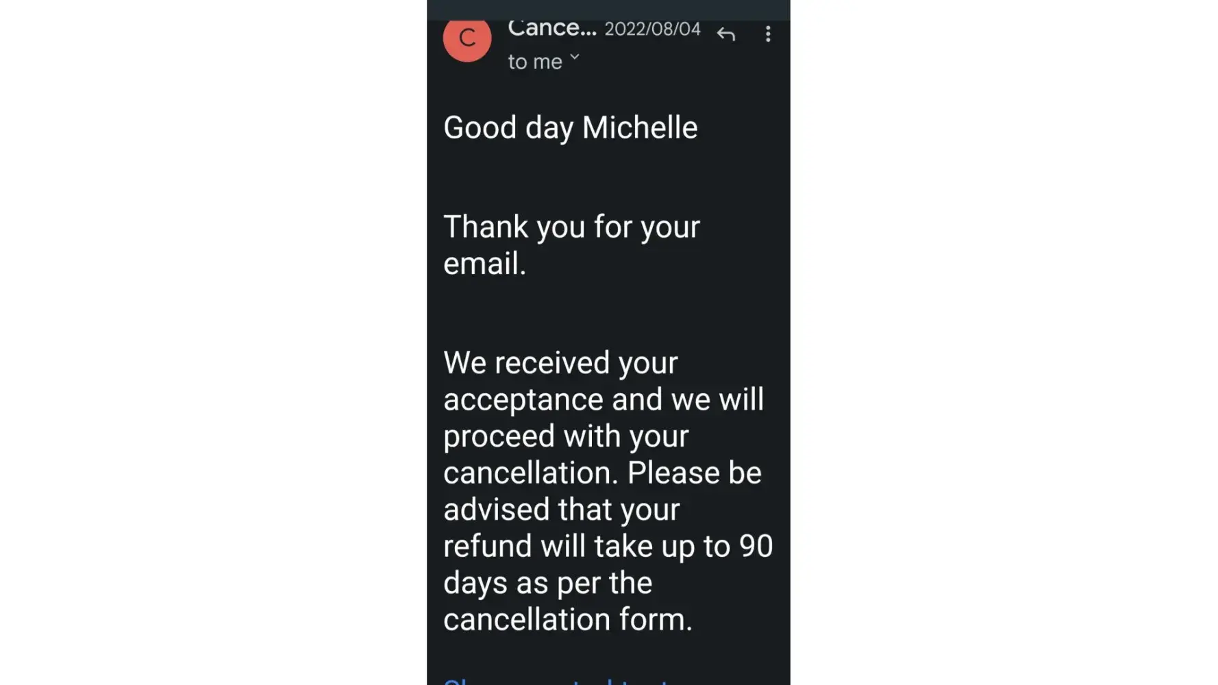 Desired outcome: Cancellation and refund