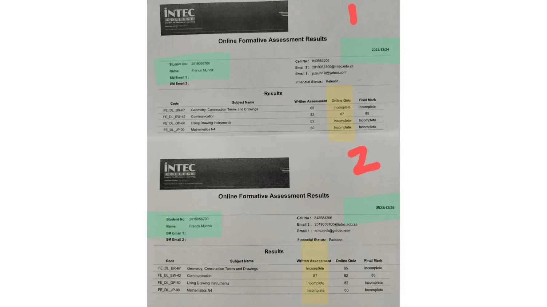 I had submitted all assignments for my course during the duration of COVID and my assignments were not marked. I was told I need to pay them to mark the assignments. I had submitted everything, and it was not my fault they had a backlog. Noone contacted me again after saying I need to pay for my assignments to be marked, I called over 30 times requesting to speak to someone who can help or get a statement of results, but I do not get any response. I am so fed up I do not know what to do.