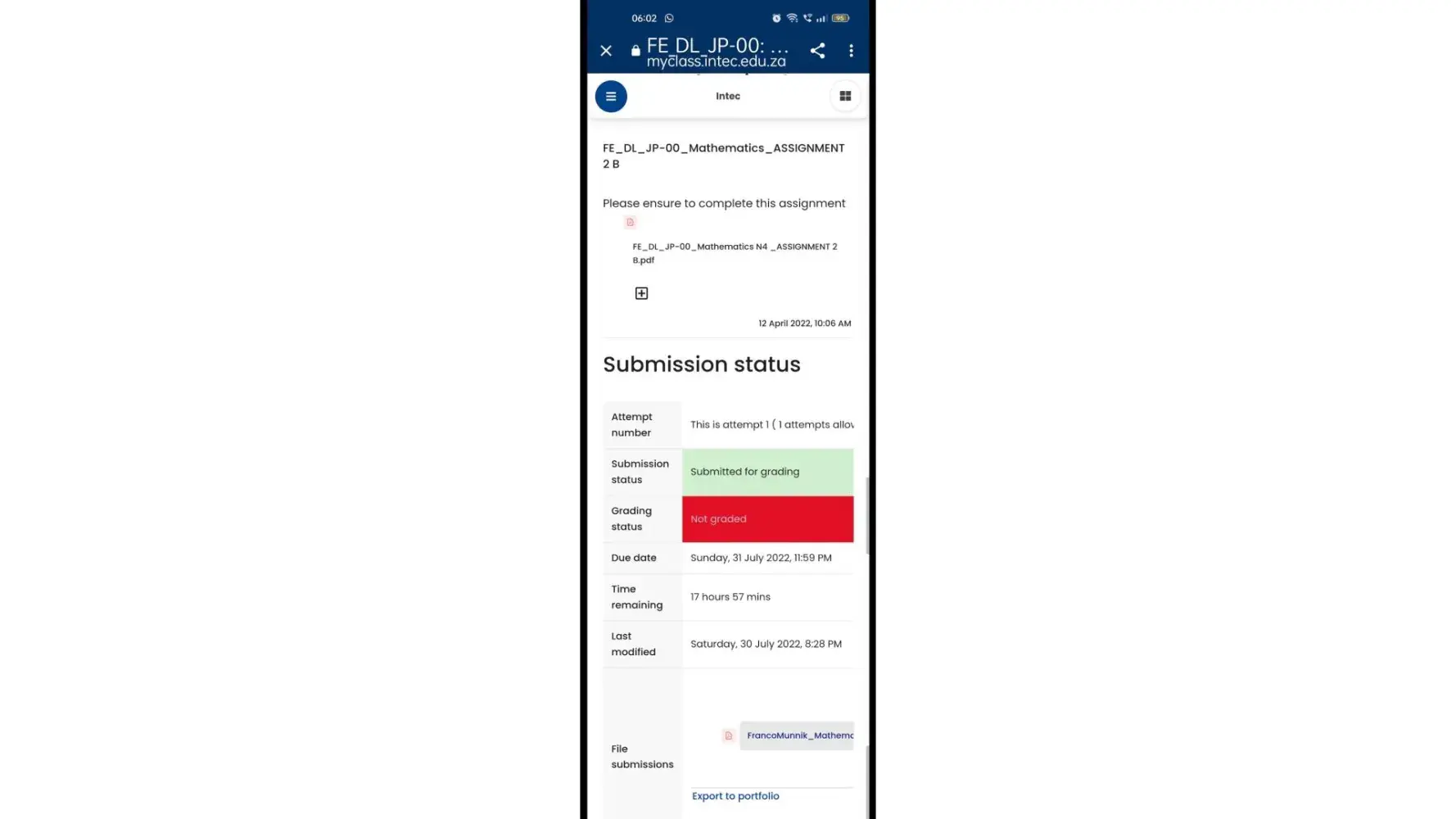 Desired outcome: Answers to what is still outstanding from student side.Results for all submitted assessments and assignments