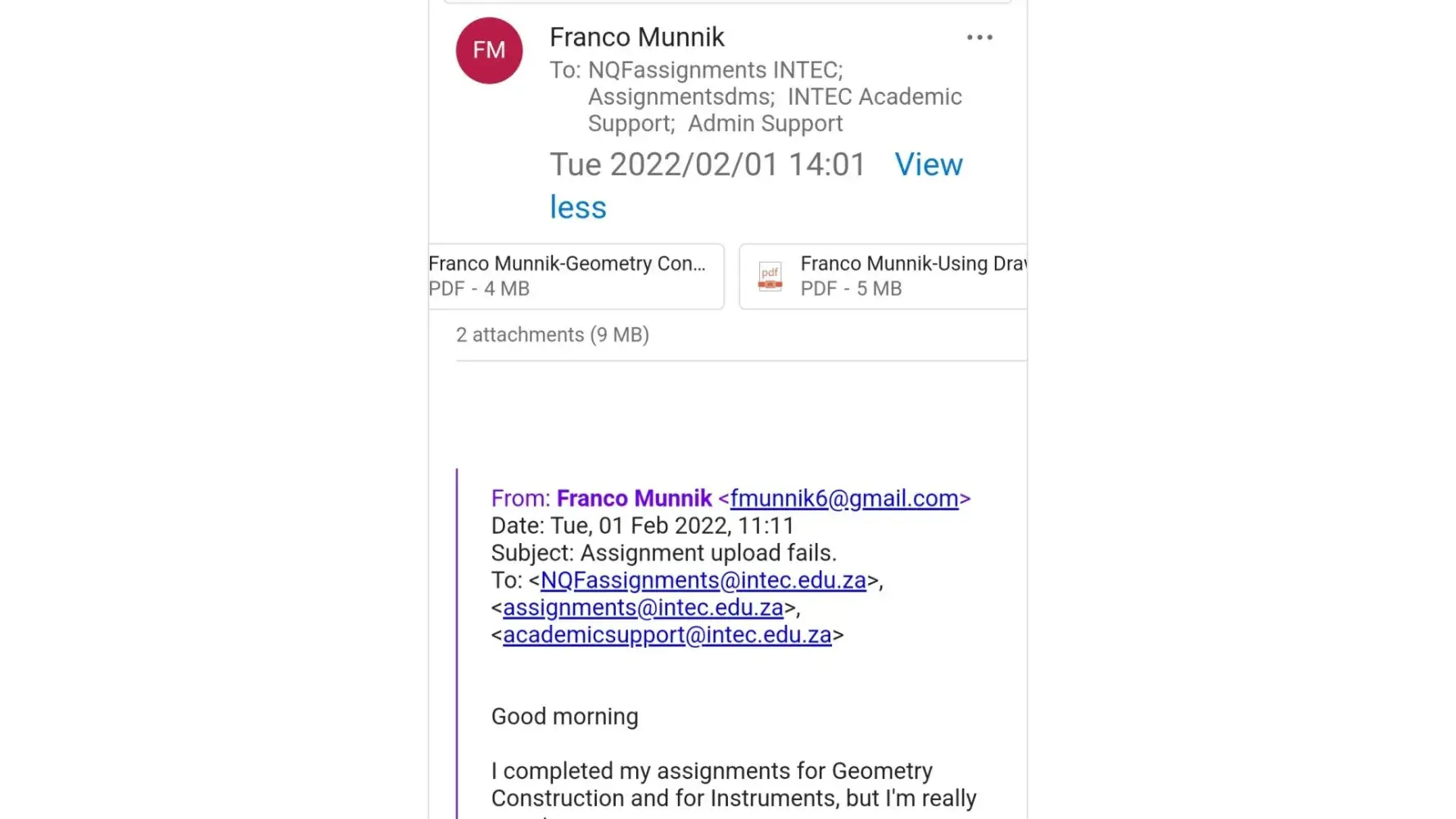 Fwd: Intec College, Student Number:[protected].