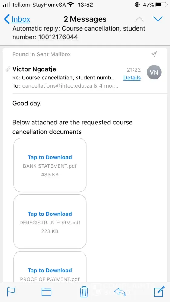 I've registered with intec in 2019 and then COVID 19 happened and then I was required to write exams in other provinces of which I also had to pay extra R 250 for access and when I checked the timetable the main module wasn't on the timetable and when I sent an e-mail regarding the issue I wasn't given any feedback till today so I filed for course cancellation in 2020 but I was never given a feedback but I get monthly fee statement but my cancellation is never processed and when I call them they just put me on hold or tell me they'll get back to me as they didn't receive any documents from me of which they don't and I've sent all the required documentation but still my matter is not taken into consideration.