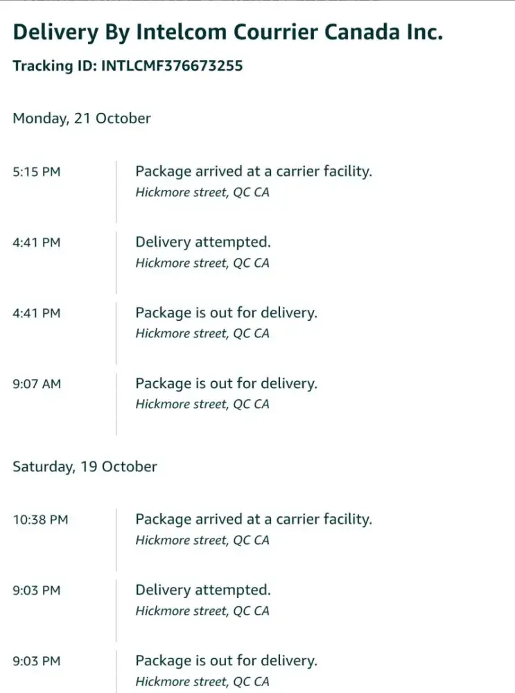 Intelcom Express All Amazon.ca packages I have ordered since Oct 3rd have not been delivered or even gotten a notification.