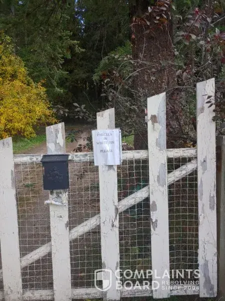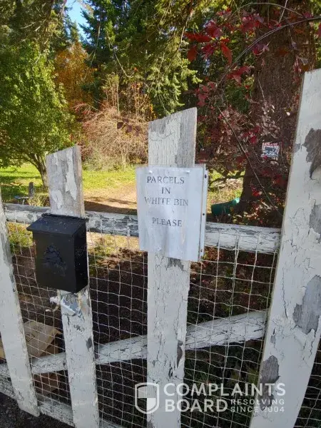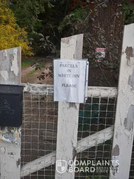 Despite signage on the gate instructing the driver to place parcels in the white bin, he insists on throwing my parcels over the locked gate. I have complained 2x to Intelcom to no effect. Someday soon will be a rainy day and he will throw my parcels into the mud. This is unacceptable.