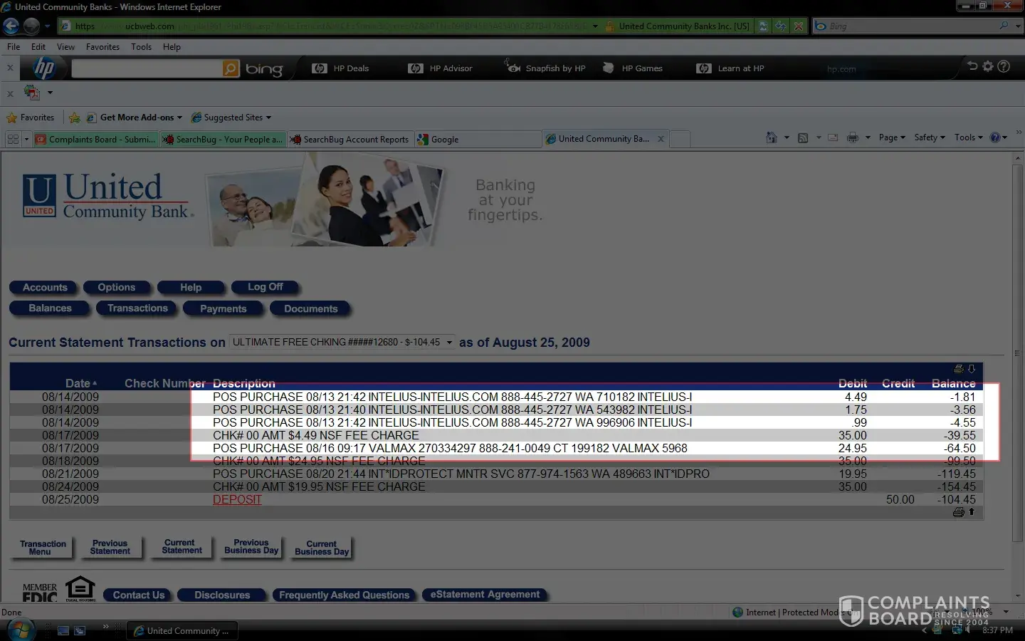 I am very peeved! I happened to look at my account online and saw that INTELIUS charged me for a service that I NEVER signed up for. I used it once for .95cent search and it never said anything about a monthly service fee. THIS IS FRAUD! And of course they are not open on the weekend. They just take your money without you even knowing! I will be calling the BBB and reporting them! This company was talked about on my local news channel that I found out about after the fact. Now I am going to have to change all of my account info so that I can protect myself! DO NOT USE THIS COMPANY THEY ARE NOTHING BUT A FRAUD AND A MAJOR RIP OFF! TIMES ARE HARD ENOUGH WITHOUT COMPANIES LIKE THESE RIPPING HARD WORKING PEOPLE OFF!
