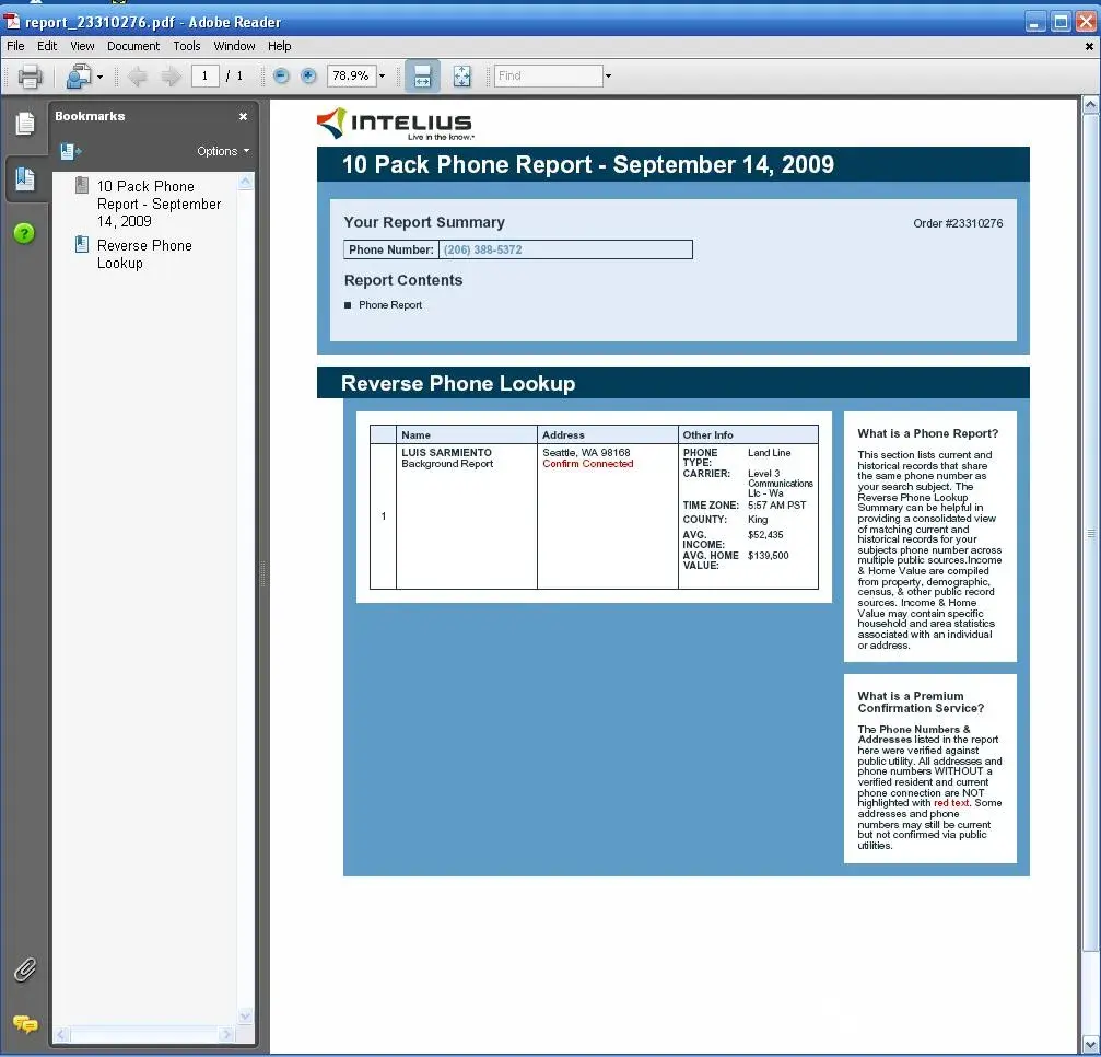 I was searching fro a friend and thought I was paying for the service of obtaining information. Next thing I know I am having 19.95 a month deducted from my checking account for 24 hour internet protection service! Kind of ironic! I called the protection company (the number was on my statement), found out what was happening and how it happened. I told them to stop and refund my money. They canceled and stated they will refund the last payment, but not the first. That I will dispute with my bank system. I called Intellius who told me when I purchased the information a pop up screen came up with a 19.95 charge and I accepted. She stated there was a small box on the bottom of the pop up I could have chosen and I would not have had this "protection" A VERY DECEPTIVE PRACTICE FROM PEOPLE WHO ARE SAYING THEY PROTECT!