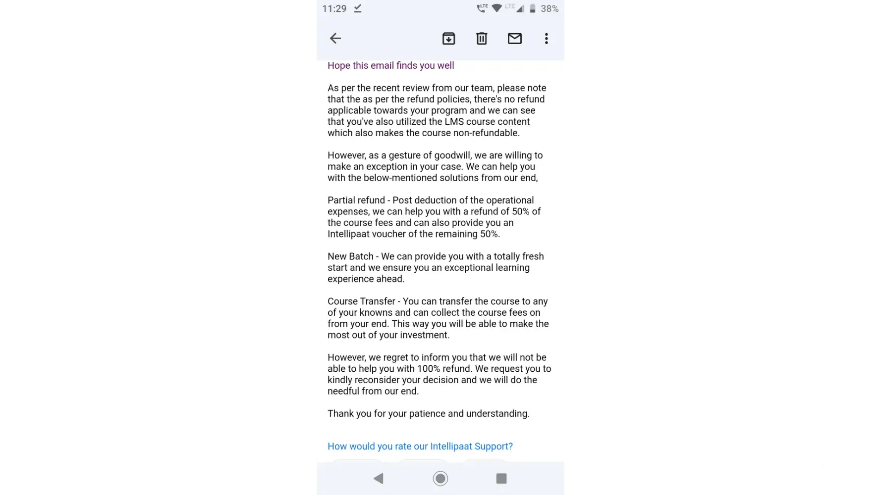Overall, I would say that Intellipaat is a poorly run business that doesn't seem to care much about its customers. They seem more focused on extracting money from people than delivering a quality service. It was a regrettable experience on my part, and I wouldn't recommend anyone to make a purchase with them.