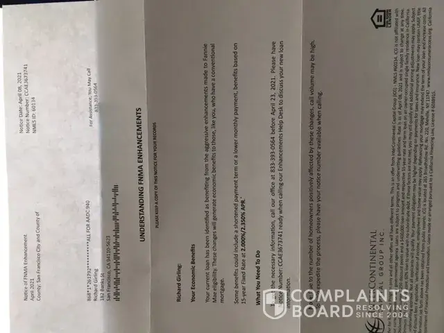 Glad I decided to do my research prior to mailing back this form to reduce my MIP from Intercontinental Capital Group. Thanks for all the complaints I can now shred this letter.