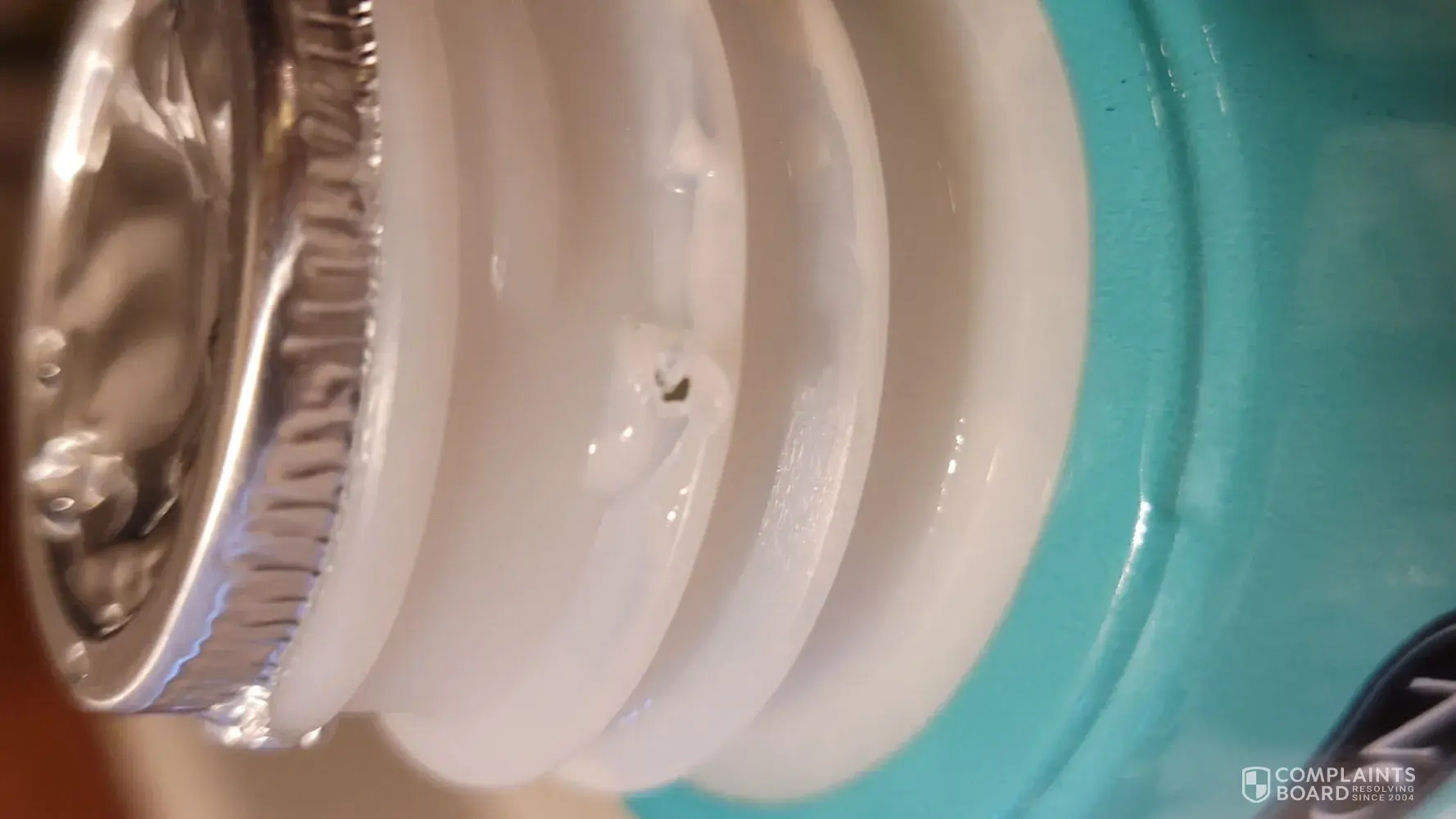 For the third time in a row, this creamer has a hole in the upper plastic where the lid screws on. This time it leaked all over the other groceries in my bag and ruined some of them. Obviously I'm scared to drink it, as it may be contaminated. I purchased this today on 4/19/23 at 3:30pm. I'm disappointed as this is my absolute favorite creamer and this is the third time this month.