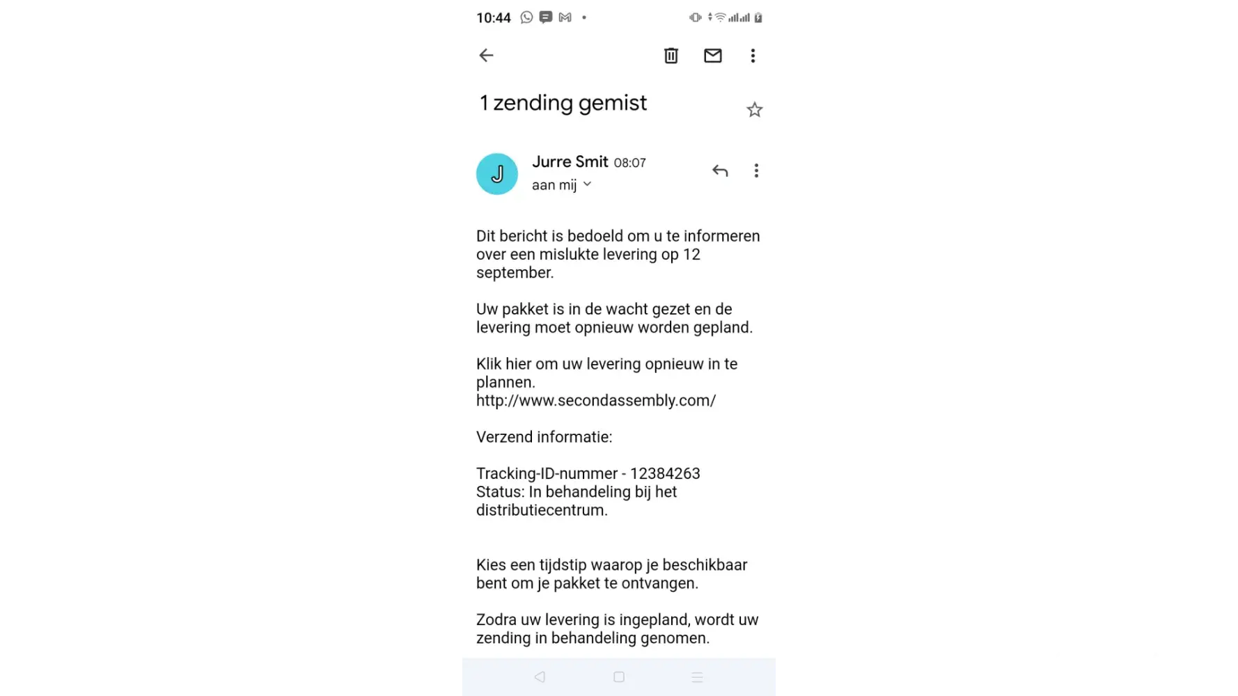 Involving a "non existing" package i had ordered including a link which I did not click but instead went directly to the adres the link refered to " www.secondassembly.com"