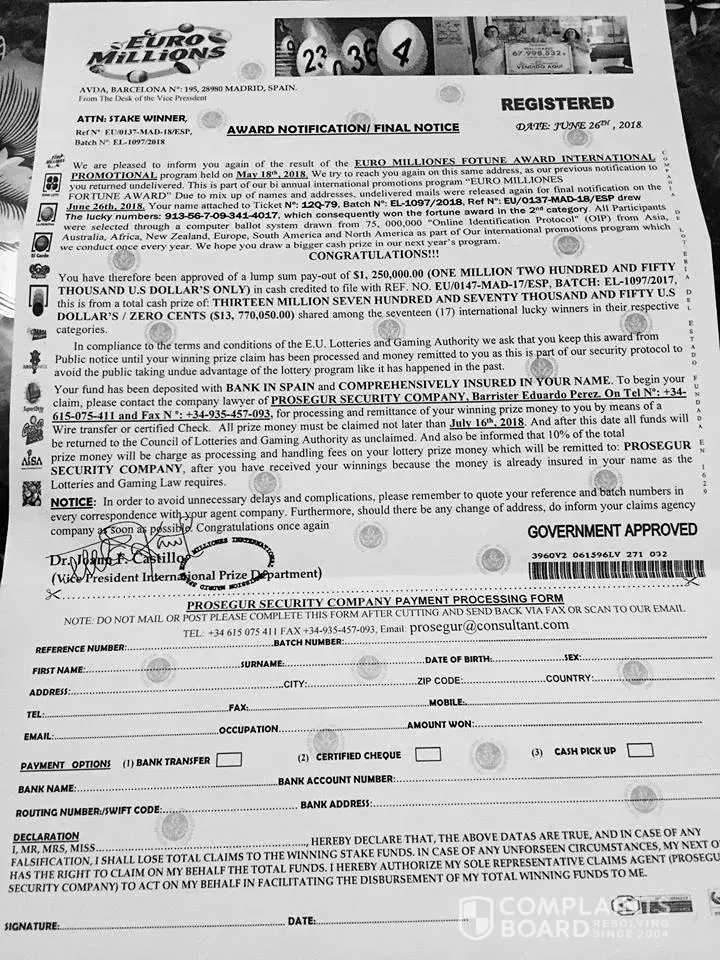 I am from Norway and I don't even play lottery, heck the legit Euro Millions company doesn't operate in my country. I received a letter similar to what I read from here. Don't fall for this scam. Funny thing is that I received this letter on 16th July, when they claim the latest date I can claim my prize is today as well haha.