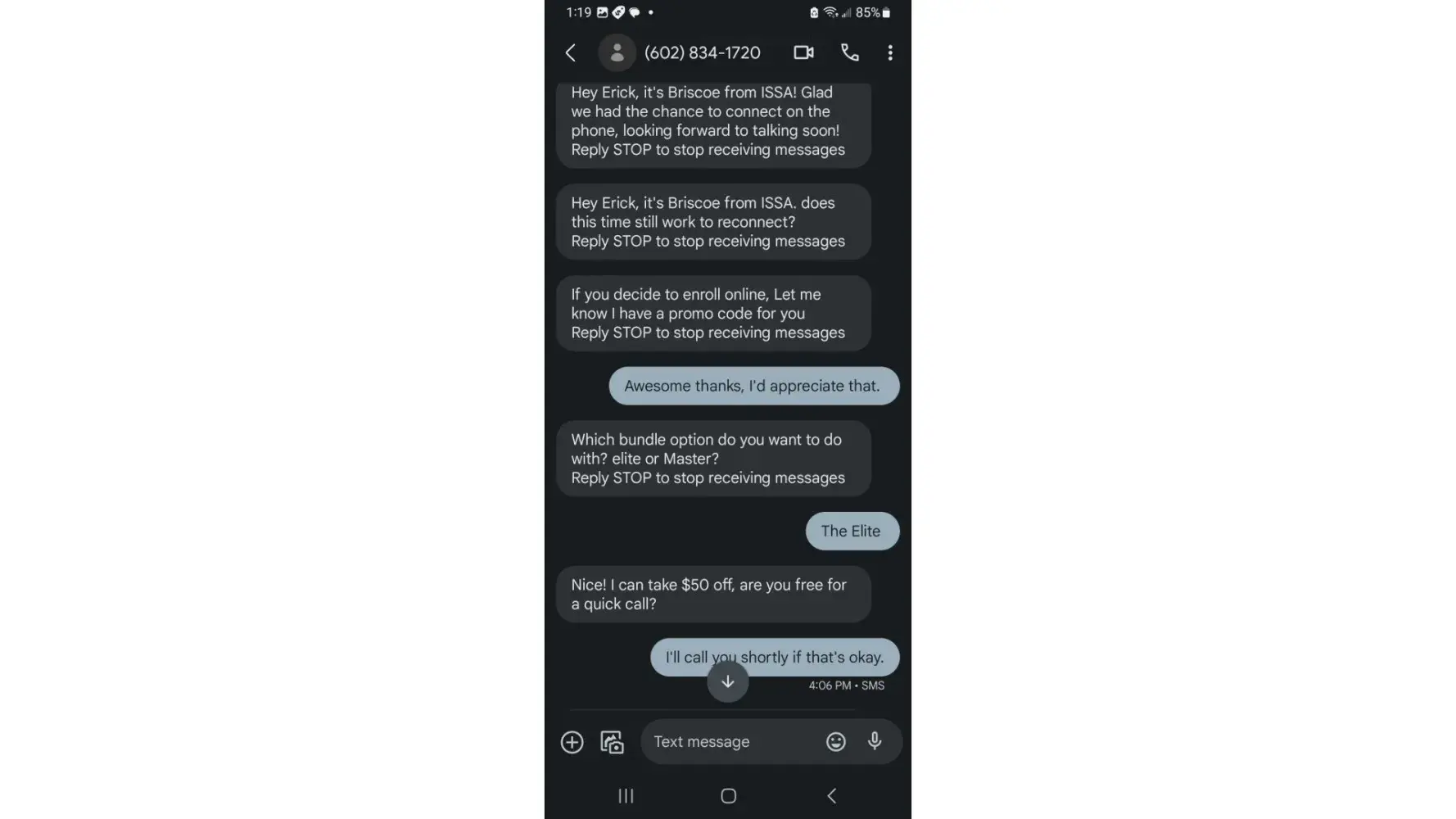 I agreed to become a fitness trainer and started with ISSA after receiving a phone call from them on May 15