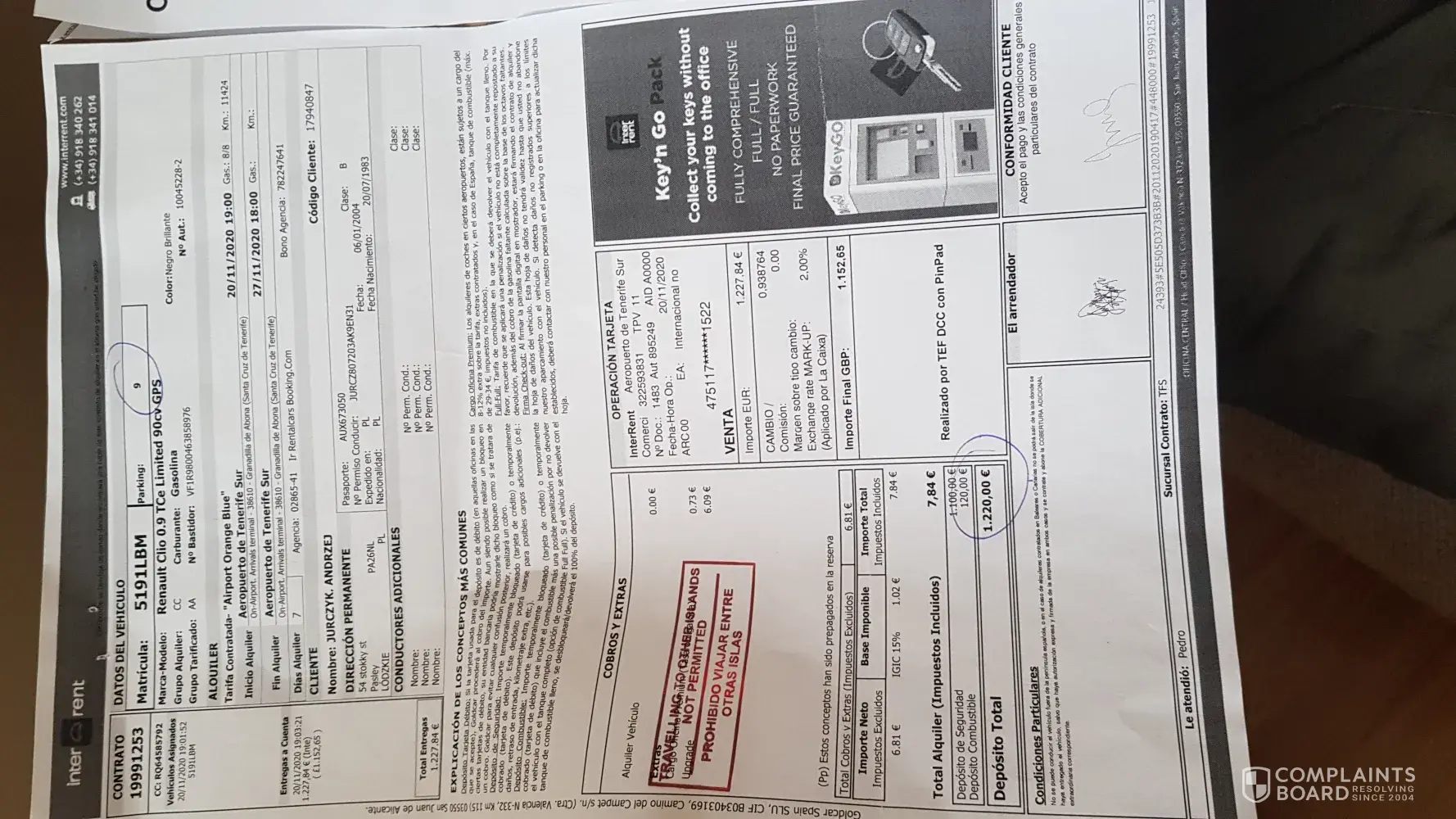 I was renting a car in Tenerife at Tenerife airport south from Interrent from 20.11.2020 to 27.11.2020.