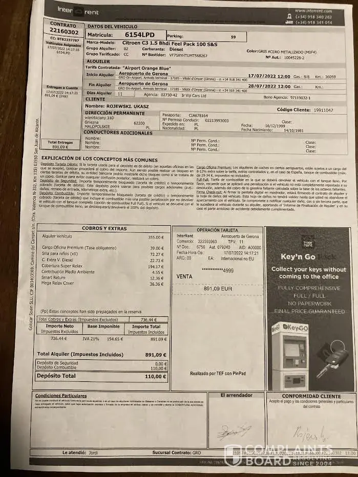 I have had some credit card charges from this car hire and I don't know what they are so that's why I need a copy of this invoice in English.