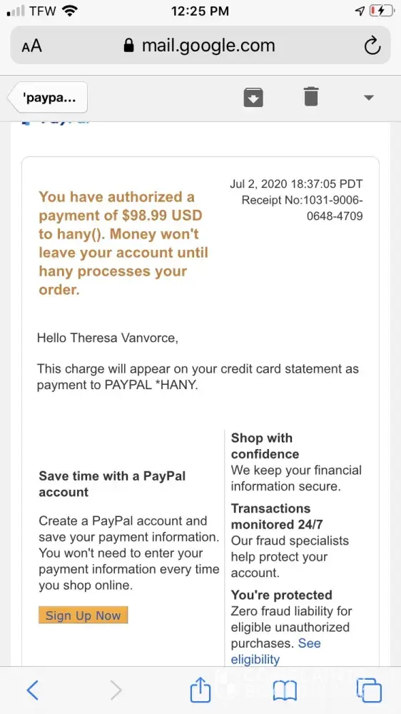 Verified customer This complaint was posted by a verified customer. Learn more