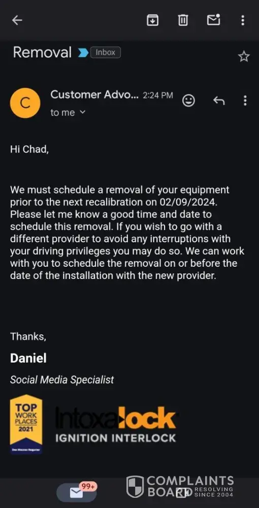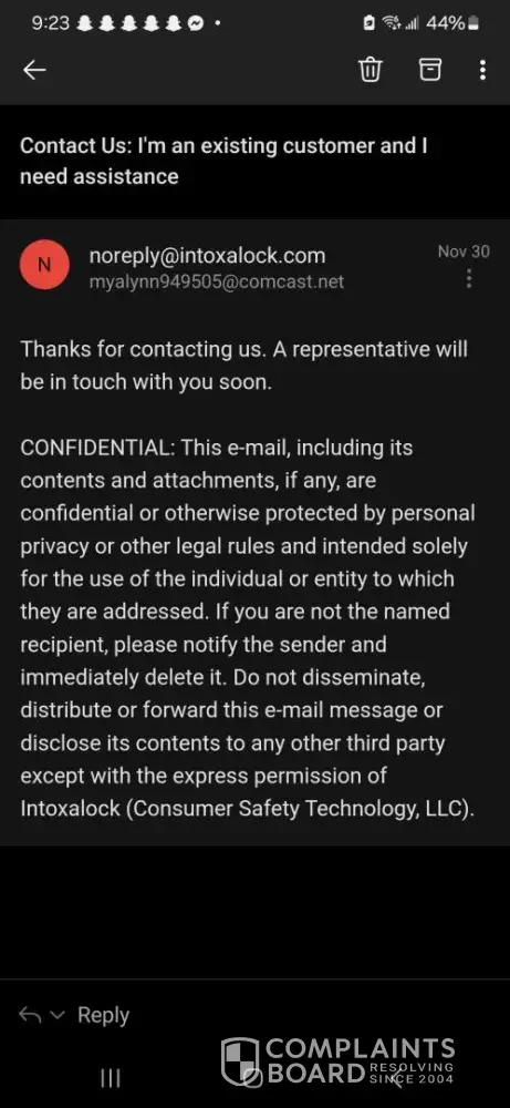 Read full complaintBreach of contract, don't do business with Intoxalock